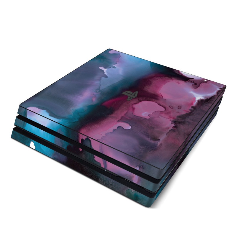 iStyles PlayStation 4 Pro Skin design of Watercolor paint, Purple, Painting, Ice, Magenta, Sky, Art, Cloud, Paint, Modern art, with black, white, purple, blue, red colors, and tagged with abstract, abstract, blue, marble, marbled, navy, purple, watercolor.