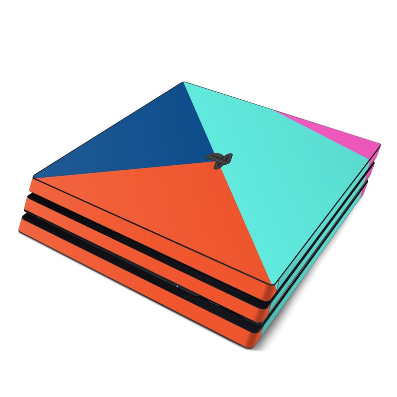 iStyles PlayStation 4 Pro Skin design of Blue, Colorfulness, Turquoise, Line, Azure, Triangle, Pattern, Graphic design, Magenta, with blue, pink, orange, red colors, and tagged with patterns, block, blocking, color, colorblock, geometric, shape, simple.