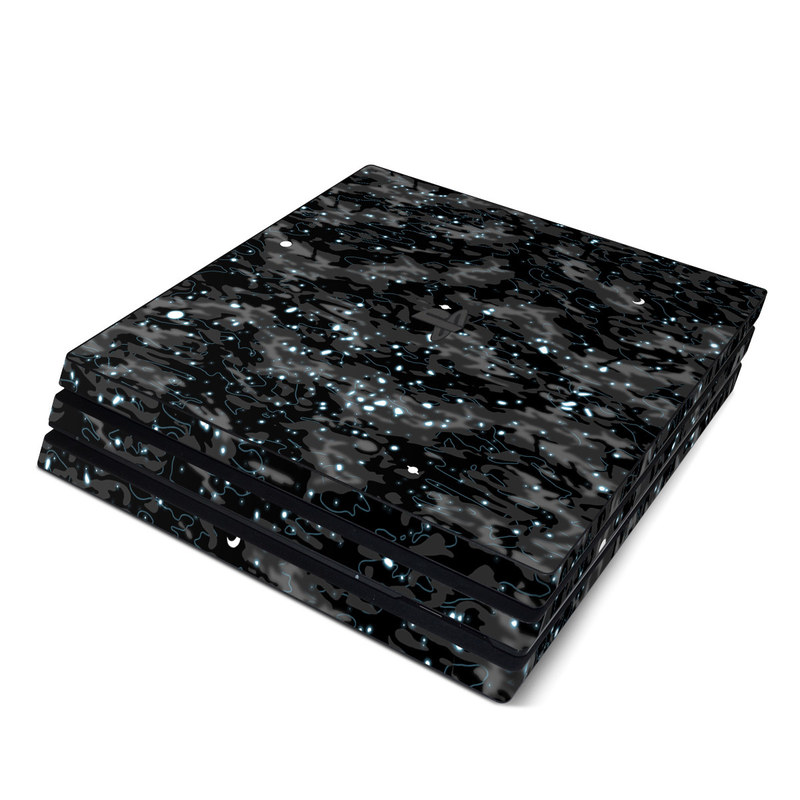 iStyles PlayStation 4 Pro Skin design of Black, Water, Space, Black-and-white, Granite, with blue, white, gray, blue colors, and tagged with space, patterns, black, blue, camo, galaxy, space, stars, universe.