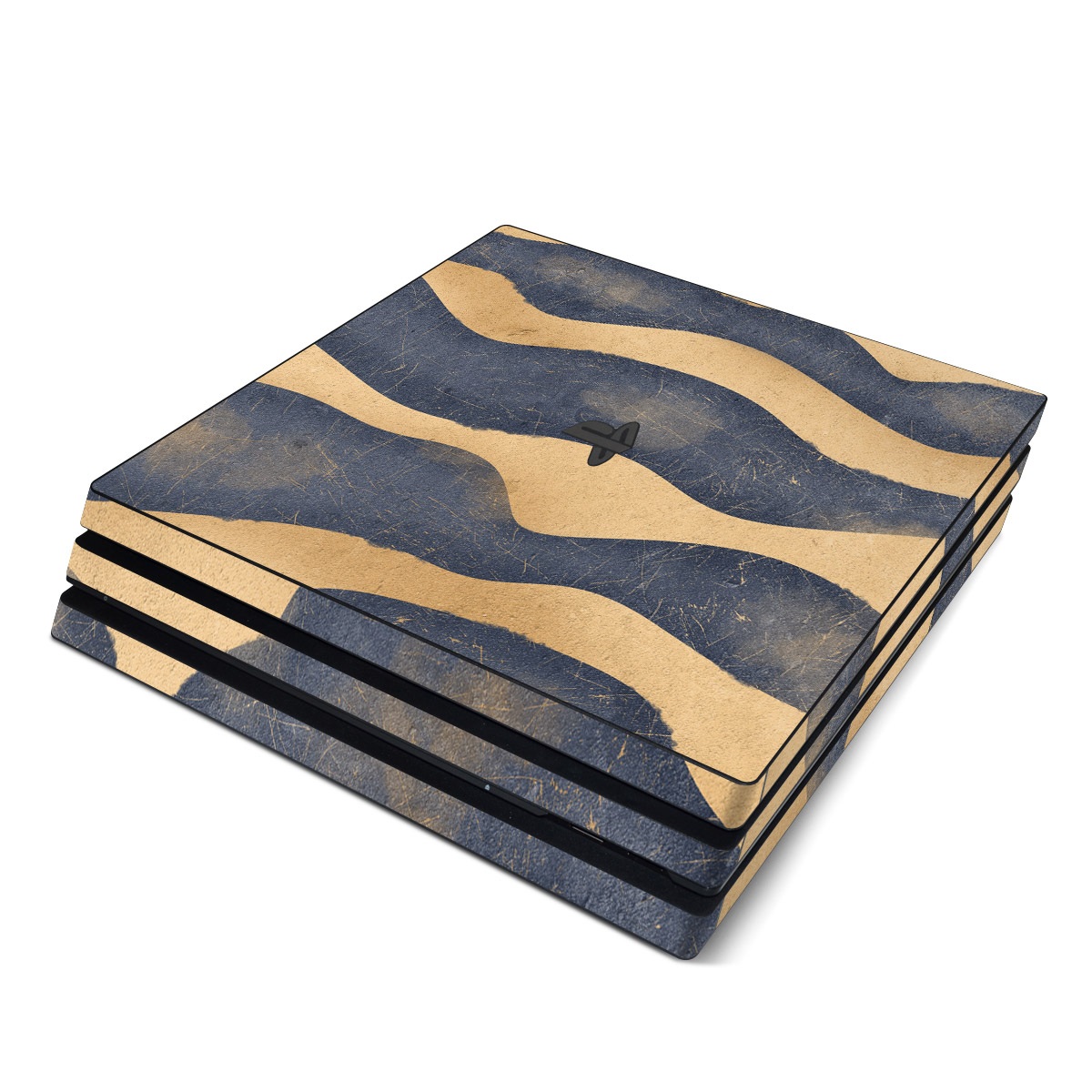 iStyles PlayStation 4 Pro Skin design of Art, Painting, Pattern, Font, Landscape, Dune, Illustration, Aeolian landform, Sand, Visual arts, with blue, brown colors, and tagged with patterns, military, lookslike, camo, helicopter.