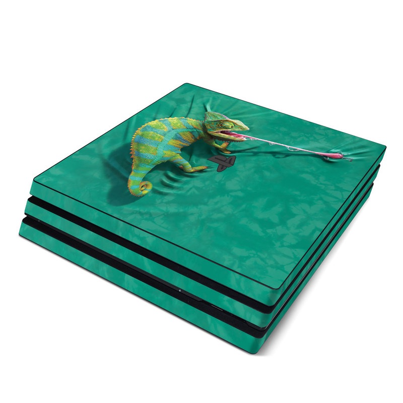 iStyles PlayStation 4 Pro Skin design of Green, Fish, Tail, Chameleon, with blue, black, green, gray colors, and tagged with animals.