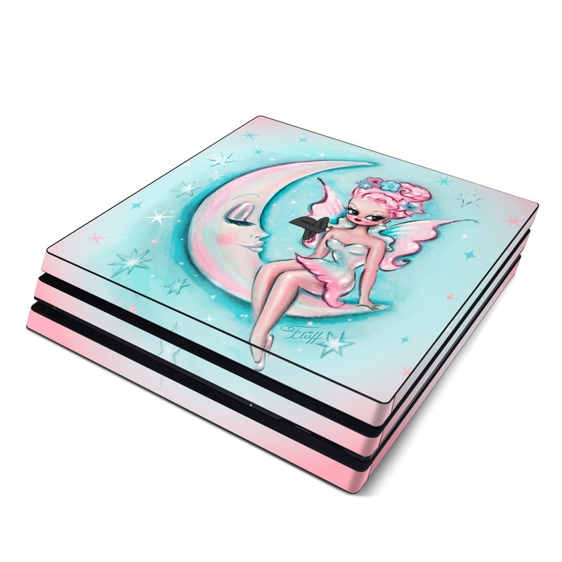 iStyles PlayStation 4 Pro Skin design of Fictional character, Angel, Cartoon, Pink, Illustration, Mythical creature, Art, with blue, pink, white colors, and tagged with people, fantasy, space, flowers, blue, fairy, fantasy, moon, pink, pixie.