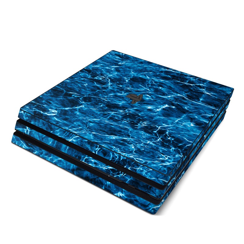 iStyles PlayStation 4 Pro Skin design of Blue, Water, Aqua, Turquoise, Azure, Electric blue, Sky, Pattern, Sea, Ocean, with blue, black colors, and tagged with lookslike, patterns, nature, camo, hunter, hunting, mossyoak, ocean, water.