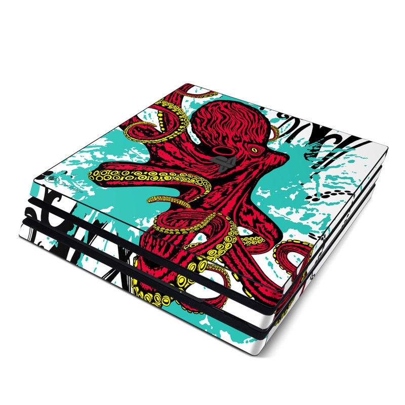 iStyles PlayStation 4 Pro Skin design of Graphic design, Illustration, Visual arts, Octopus, Design, Art, Fictional character, Pattern, Clip art, Line art, with black, white, gray, red, blue, green colors, and tagged with fantasy.