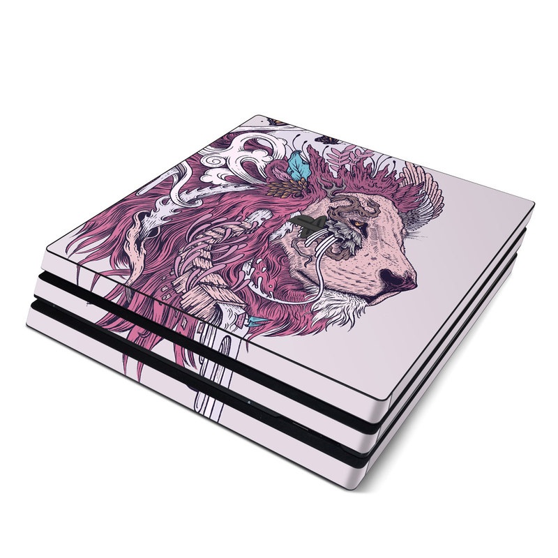 iStyles PlayStation 4 Pro Skin design of Illustration, Drawing, Sketch, Art, Graphic design, Lion, Goats, Fictional character, Ink, Bison, with gray, purple, black, red colors, and tagged with animals, abstract.