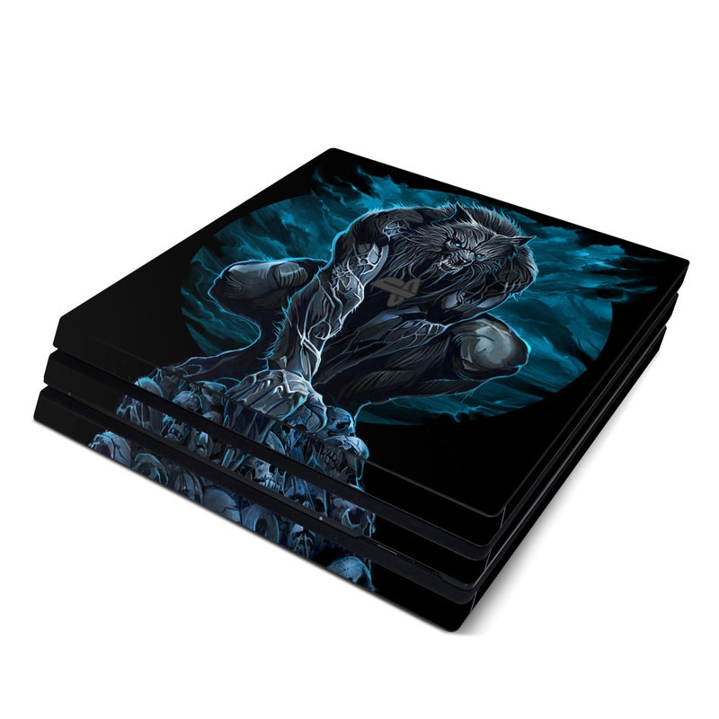 iStyles PlayStation 4 Pro Skin design of Illustration, Fictional character, Werewolf, Darkness, Art, Mythology, Graphic design, Mythical creature, Cg artwork, with gray, blue, black colors, and tagged with animals, skulls, fantasy.