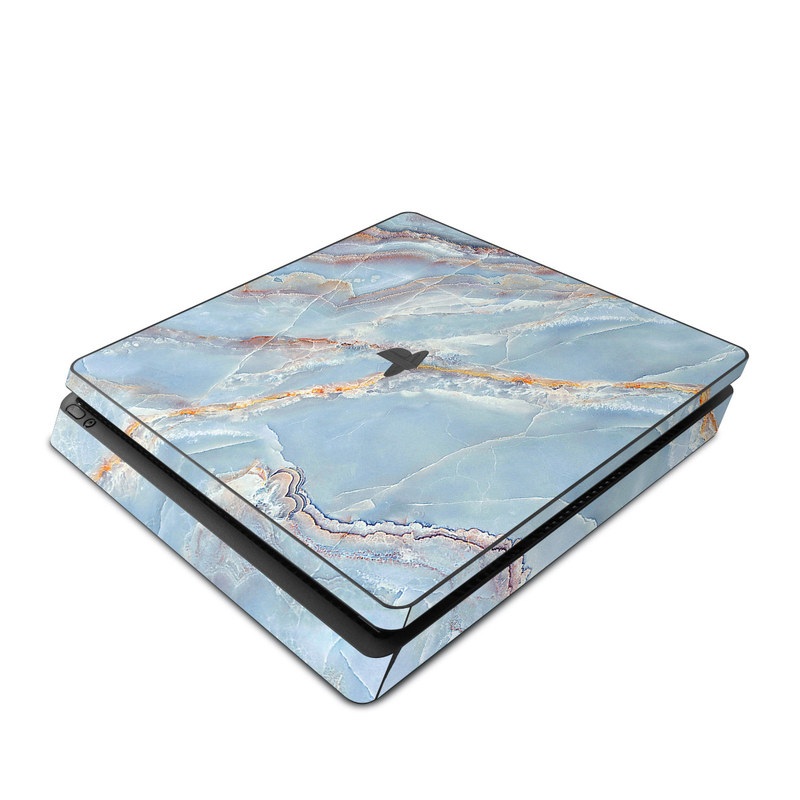 iStyles PlayStation 4 Slim Skin design of Blue, Azure, Aqua, Onyx, with blue, red, orange, white colors, and tagged with patterns, lookslike, nature.