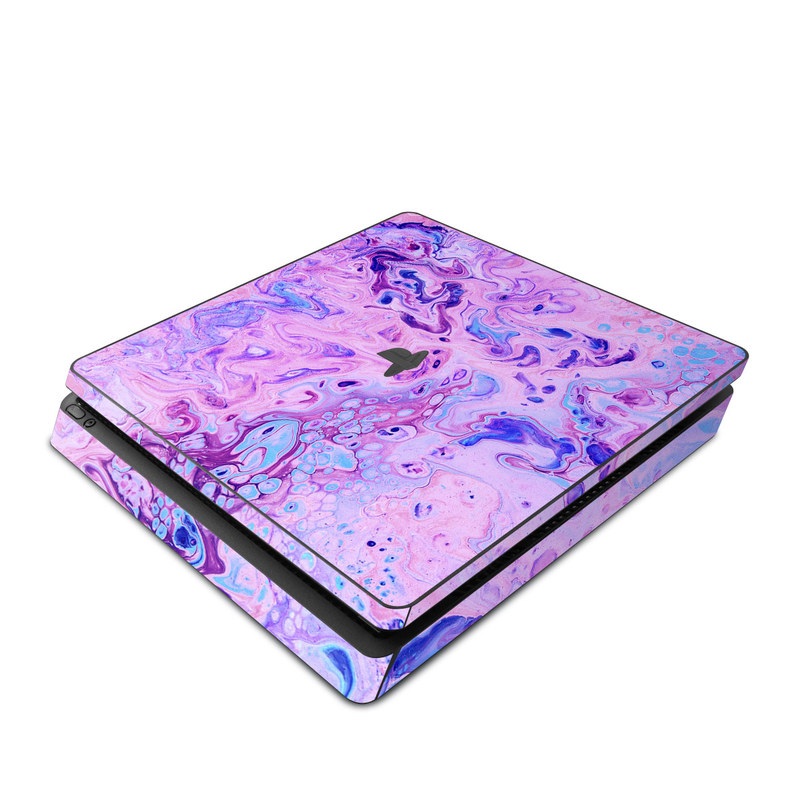 iStyles PlayStation 4 Slim Skin design of Purple, Violet, Lilac, Art, Pattern, Modern art, Painting, Visual arts, Acrylic paint, Magenta, with pink, purple, blue colors, and tagged with abstract, blue, bubble, bubbles, marble, marblepainting, paint, pink, purple, soap.