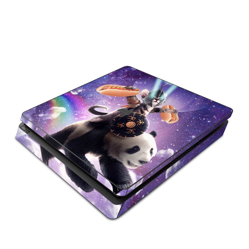 iStyles PlayStation 4 Slim Skin design of Bear, Illustration, Outer space, Animated cartoon, Graphic design, Teddy bear, Space, Sky, Graphics, Fictional character, with black, white, blue, brown, gray, red, yellow, green, pink colors, and tagged with space, animals, fantasy, animals, funny, galaxy, lasers, random, space, weird.