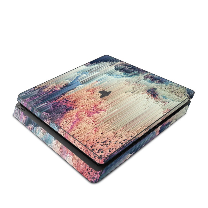 iStyles PlayStation 4 Slim Skin design of Blue, Pink, Sky, Turquoise, Design, Rock, Textile, Photography, Cloud, Winter, with white, blue, purple, pink, red colors, and tagged with abstract, fantasy, space, abstract, bright, coral, geometric, geometry, glitch, lines, matrix, space.
