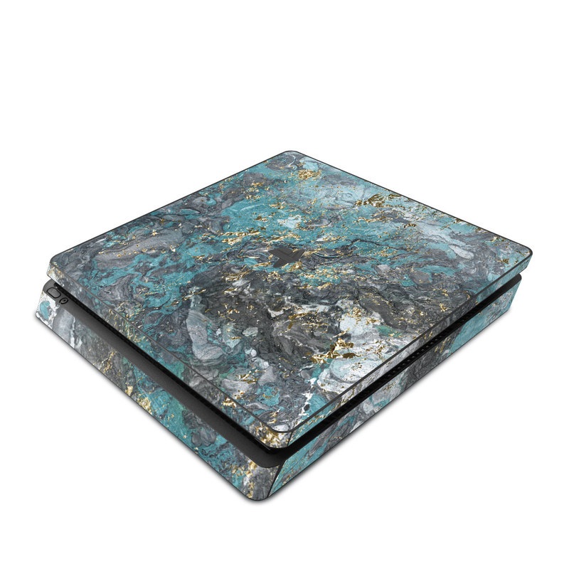 iStyles PlayStation 4 Slim Skin design of Blue, Turquoise, Green, Aqua, Teal, Geology, Rock, Painting, Pattern, with black, white, gray, green, blue colors, and tagged with patterns, lookslike, nature.