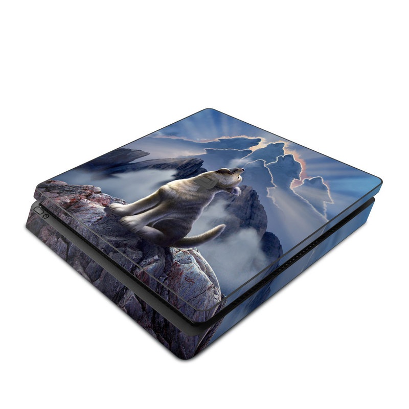 iStyles PlayStation 4 Slim Skin design of Sky, Cloud, Atmosphere, Rock, Wolf, Photography, Cg artwork, Illustration, Mountain, Mythology, with white, blue, gray, brown colors, and tagged with animals, nature, animals, dogs, pack, wolf, wolves.