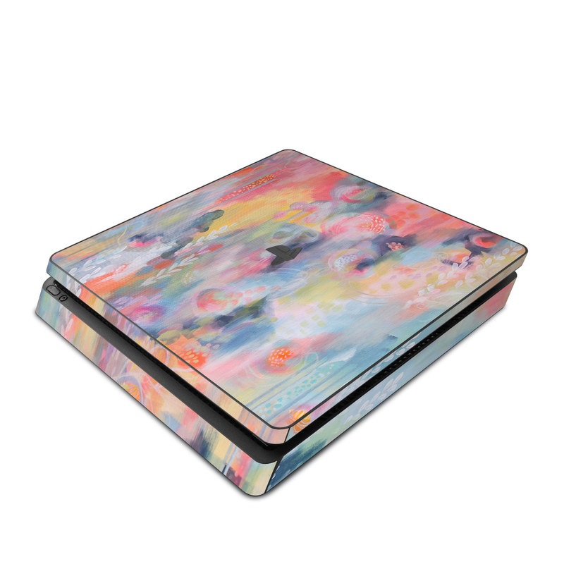 iStyles PlayStation 4 Slim Skin design of Painting, Watercolor paint, Modern art, Acrylic paint, Art, Visual arts, Paint, Artwork, Dye, with blue, pink, orange, yellow, red, white colors, and tagged with flowers, patterns, abstract, abstract, canvas, paint, painting, pastel, watercolor.