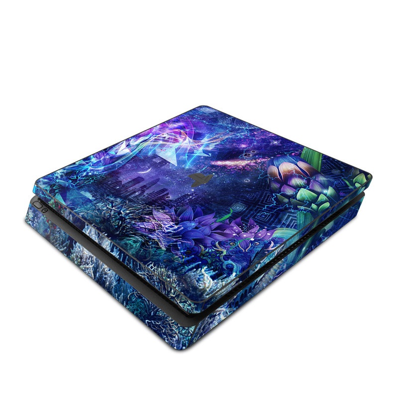 iStyles PlayStation 4 Slim Skin design of Blue, Purple, Violet, Lavender, Majorelle blue, Psychedelic art, Electric blue, Organism, Art, Design, with blue, green, purple, red, pink colors, and tagged with nature, flowers, urban.