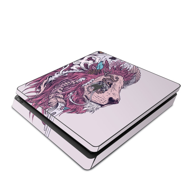 iStyles PlayStation 4 Slim Skin design of Illustration, Drawing, Sketch, Art, Graphic design, Lion, Goats, Fictional character, Ink, Bison, with gray, purple, black, red colors, and tagged with animals, abstract.