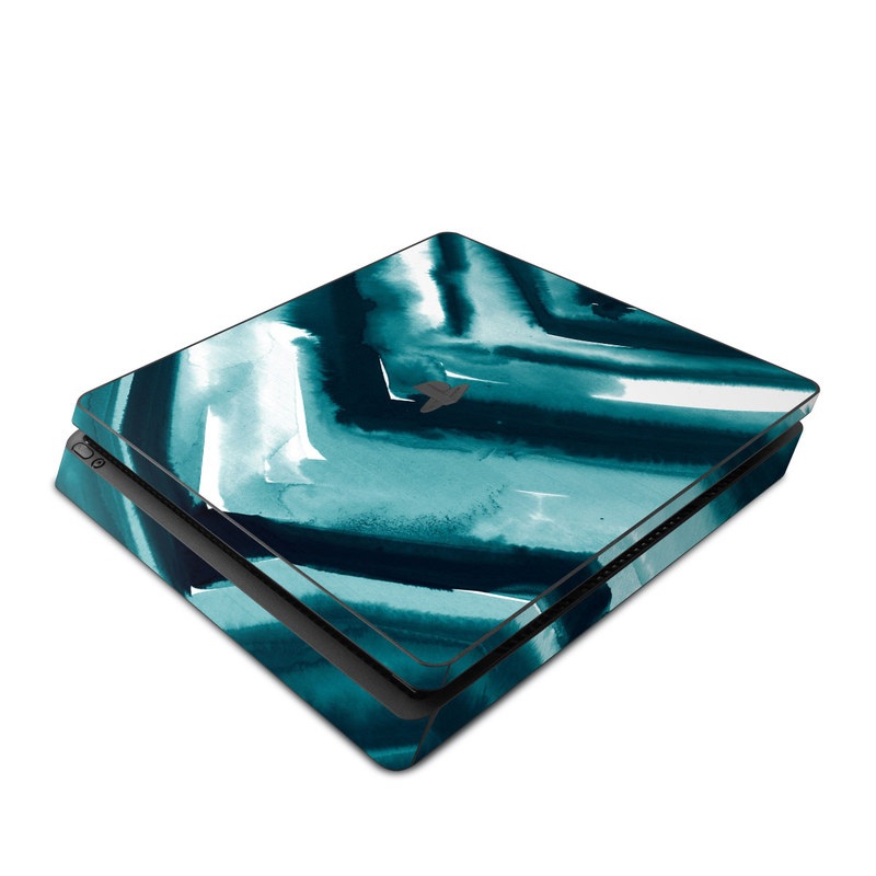 iStyles PlayStation 4 Slim Skin design of Blue, Green, Turquoise, Aqua, Teal, Photography, Pattern, with blue, white, black colors, and tagged with patterns, chevron, watercolor.