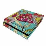 iStyles PlayStation 4 Skin design of Pattern, Visual arts, Motif, Floral design, Design, Art, Plant, Flower, Organism, Textile, with red, yellow, blue, gray, pink colors, and tagged with flowers.