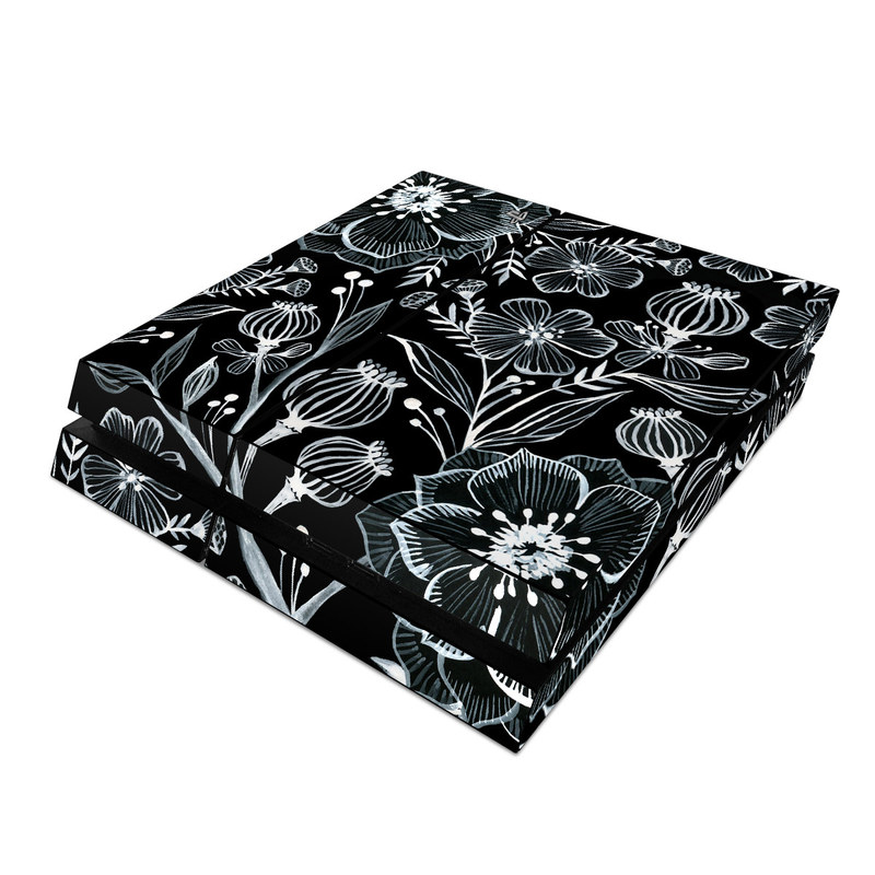iStyles PlayStation 4 Skin design of Pattern, Black-and-white, Flower, Monochrome photography, Plant, Design, Monochrome, Botany, Wildflower, Visual arts, with black, white colors, and tagged with flowers, patterns, blackandwhite, botanical, floral, flowerpattern, flowers.