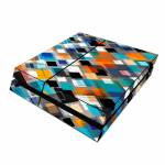 iStyles PlayStation 4 Skin design of Pattern, Line, Design, Colorfulness, Plaid, Tints and shades, Textile, Symmetry, Square, with black, blue, red, orange, white colors, and tagged with patterns.
