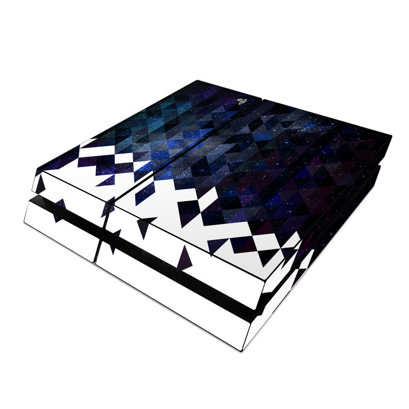 iStyles PlayStation 4 Skin design of Text, Pattern, Graphic design, Font, Purple, Design, Line, Triangle, Logo, Graphics, with black, blue, white colors, and tagged with patterns, space, geometry, space, stars, triangles.
