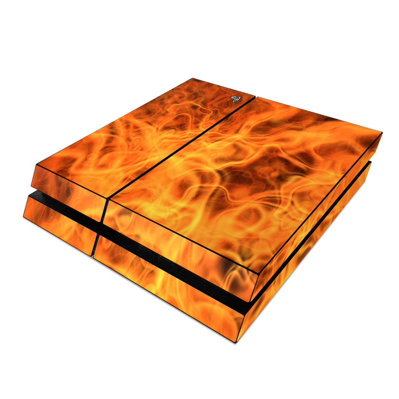 iStyles PlayStation 4 Skin design of Flame, Fire, Heat, Orange, with red, orange, black colors, and tagged with flames, patterns.