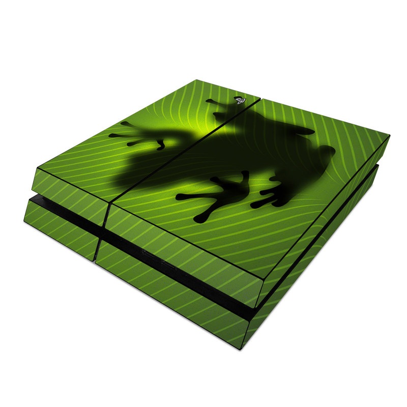 iStyles PlayStation 4 Skin design of Green, Frog, Tree frog, Amphibian, Shadow, Silhouette, Macro photography, Illustration, with green, black colors, and tagged with animals.