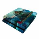 iStyles PlayStation 4 Skin design of Nature, Natural landscape, Sky, Painting, Landscape, Illustration, Watercolor paint, Art, Calm, Water castle, with black, gray, blue, green colors, and tagged with fineart, objects, fantasy, nature, urban.