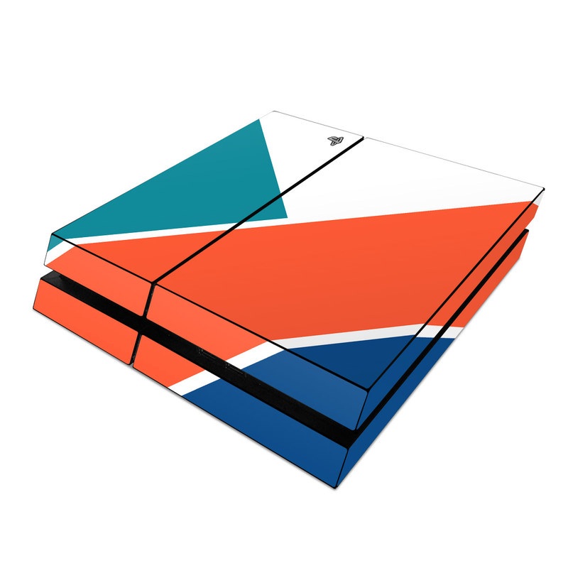 iStyles PlayStation 4 Skin design of Blue, Orange, Line, Turquoise, Flag, Electric blue, Pattern, Parallel, with white, blue, red, orange, green colors, and tagged with patterns, block, blocking, color, colorblock, geometric, shape, simple.