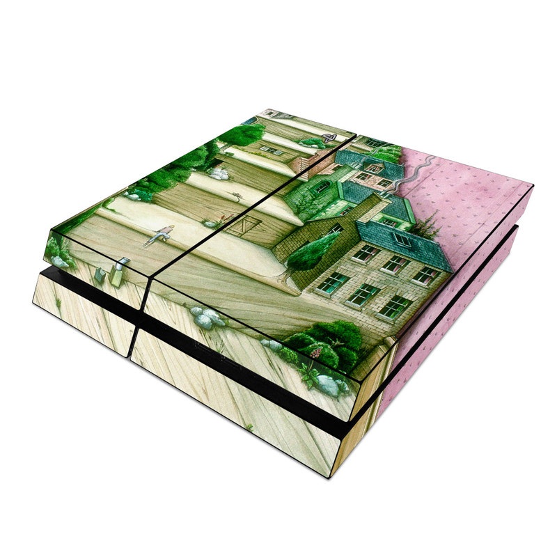 iStyles PlayStation 4 Skin design of Green, Stairs, House, Watercolor paint, Home, Illustration, Building, Wood, Plant, Sketch, with pink, green, brown colors, and tagged with objects, fineart, nature, urban, colinthompson, fineart, illustration, surreal.