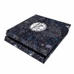 iStyles PlayStation 4 Skin design of Blue, Pattern, Psychedelic art, Design, Circle, Art, Font, Graphic design, Visual arts, Illustration, with black, gray colors, and tagged with objects, patterns, animals, grandfather, clock, clocks, alarm, time, antique, table.