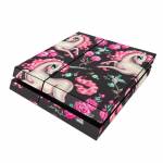 iStyles PlayStation 4 Skin design of Pink, Horse, Pony, Fictional character, Unicorn, Mythical creature, Mane, Textile, Animal figure, Illustration, with white, pink, blue, black, red colors, and tagged with patterns, animals, flowers, fantasy, flower, flowers, magic, magical, pink, rose, roses, unicorn, unicorns.