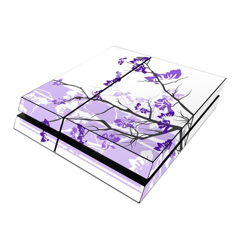 iStyles PlayStation 4 Skin design of Branch, Purple, Violet, Lilac, Lavender, Plant, Twig, Flower, Tree, Wildflower, with white, purple, gray, pink, black colors, and tagged with flowers.