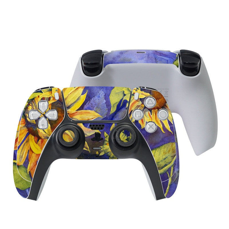 iStyles PlayStation 5 Controller Skin design of Flower, Sunflower, Painting, sunflower, Watercolor paint, Plant, Flowering plant, Yellow, Acrylic paint, Still life, with green, black, blue, gray, red, orange colors, and tagged with flowers, fineart.