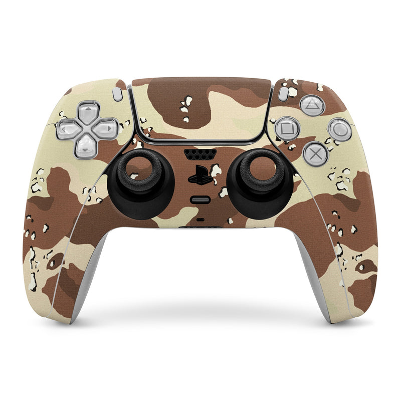 iStyles PlayStation 5 Controller Skin design of Military camouflage, Brown, Pattern, Design, Camouflage, Textile, Beige, Illustration, Uniform, Metal, with gray, red, black, green colors, and tagged with military, patterns.