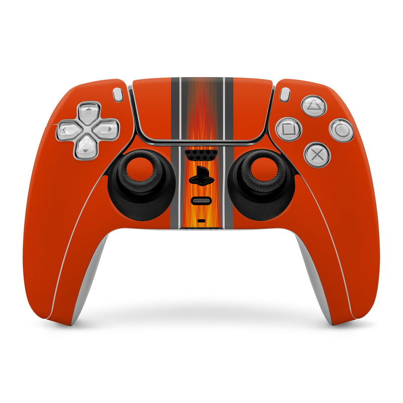 iStyles PlayStation 5 Controller Skin design of Orange, Red, Line, Material property, Rectangle, Automotive lighting, with red, black, orange, gray colors, and tagged with flames.