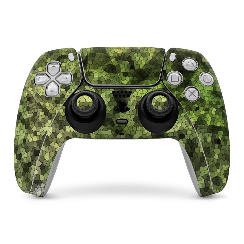 iStyles PlayStation 5 Controller Skin design of Green, Grass, Leaf, Plant, Pattern, Groundcover, with black, white, green, gray colors, and tagged with patterns.