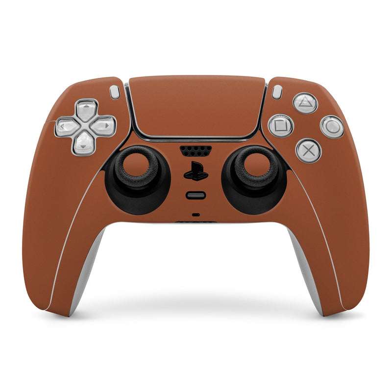 iStyles PlayStation 5 Controller Skin design of Brown, Amber, Font, Pattern, Peach, Event, Magenta, Carmine, Tints and shades, Circle, with brown, orange colors, and tagged with solidcolors, warm, brownish, orange, namesake, spice, grounding, security, resilience, dependability.
