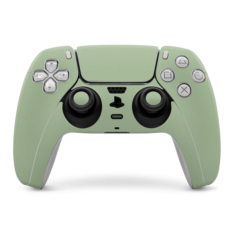 iStyles PlayStation 5 Controller Skin design of Font, Pattern, Event, Circle, Electric blue, Grass, Peach, Brand, Magenta, with green, gray colors, and tagged with solidcolors, green, gray, neutral, quatemary, color, citron, slate.