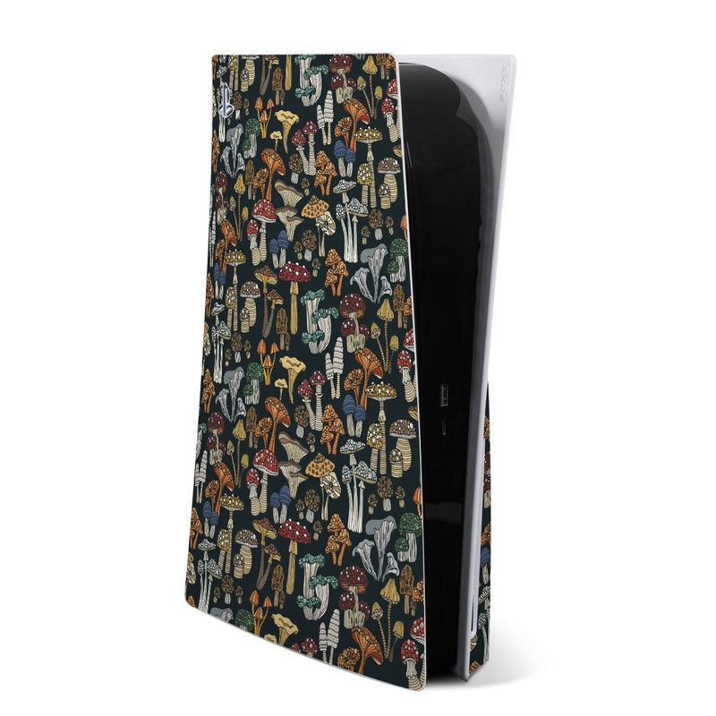 iStyles PlayStation 5 Skin design of Brown, Textile, Sleeve, Art, Font, Pattern, Collage, Painting, Illustration, Event, with black, white, blue, red, yellow, orange colors, and tagged with patterns, objects, fungi, mushrooms, pattern.