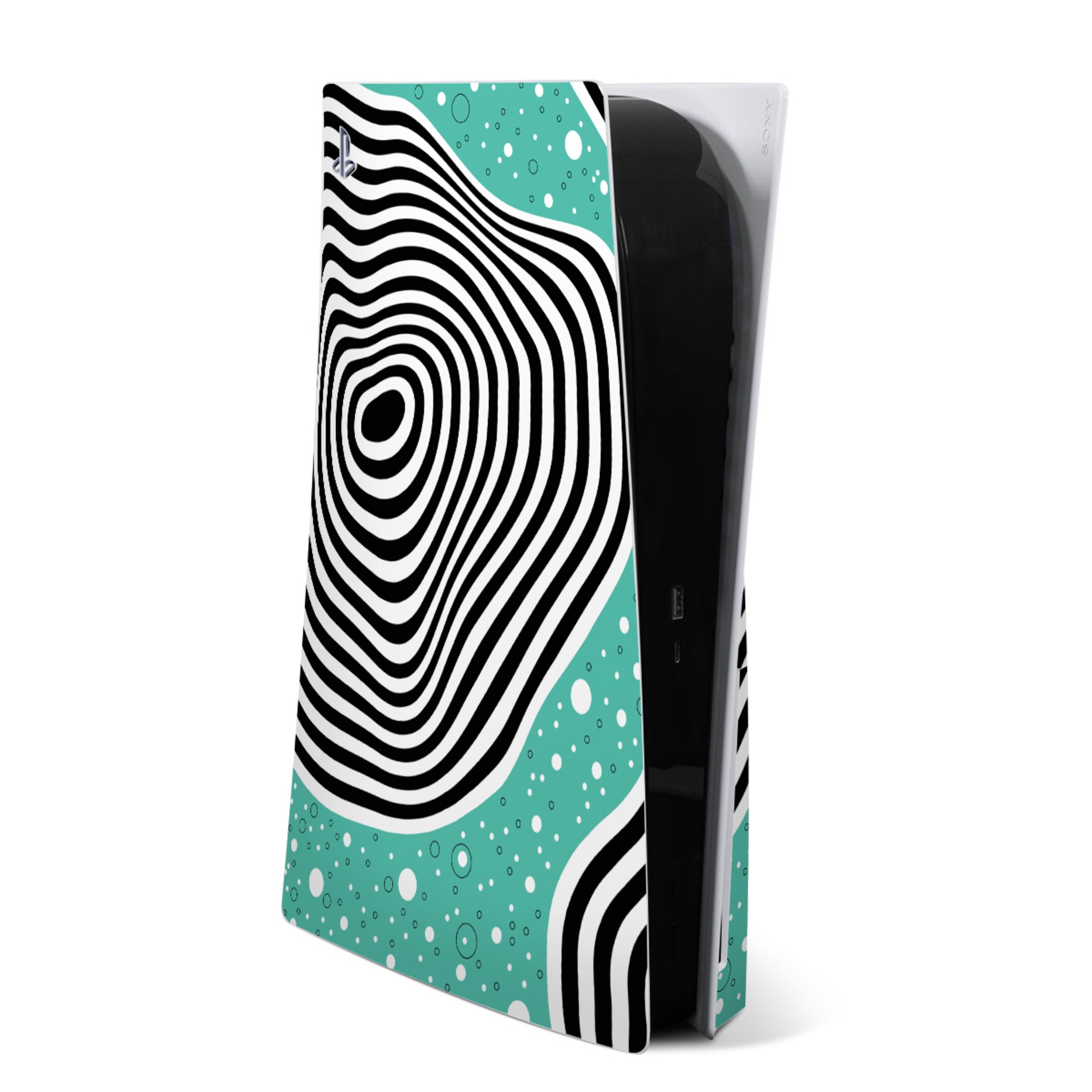 iStyles PlayStation 5 Skin design of White, Rectangle, Art, Line, Aqua, Pattern, Electric blue, Visual arts, Font, Graphics, with white, black, blue, green colors, and tagged with patterns, sugar, dots.