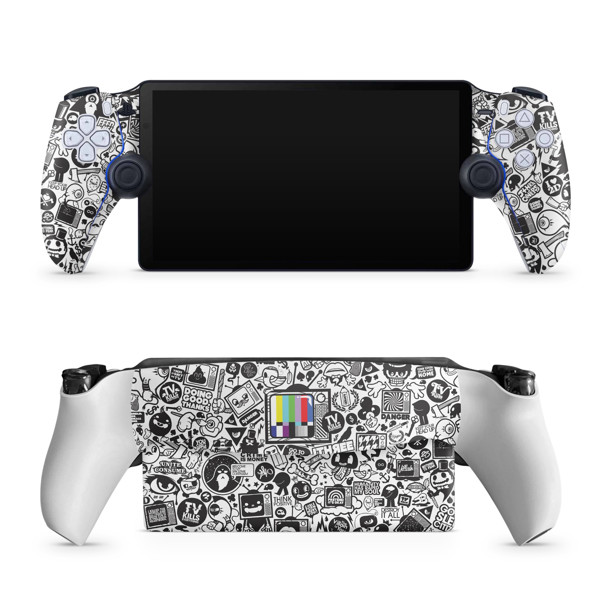 iStyles PlayStation Portal Skin design of Pattern, Drawing, Doodle, Design, Visual arts, Font, Black-and-white, Monochrome, Illustration, Art, with gray, black, white colors, and tagged with patterns, objects.