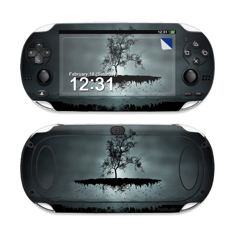 iStyles PlayStation Vita Skin design of Reflection, Sky, Nature, Water, Black, Tree, Black-and-white, Monochrome photography, Natural landscape, Atmospheric phenomenon, with black, gray, blue colors, and tagged with nature, fantasy.