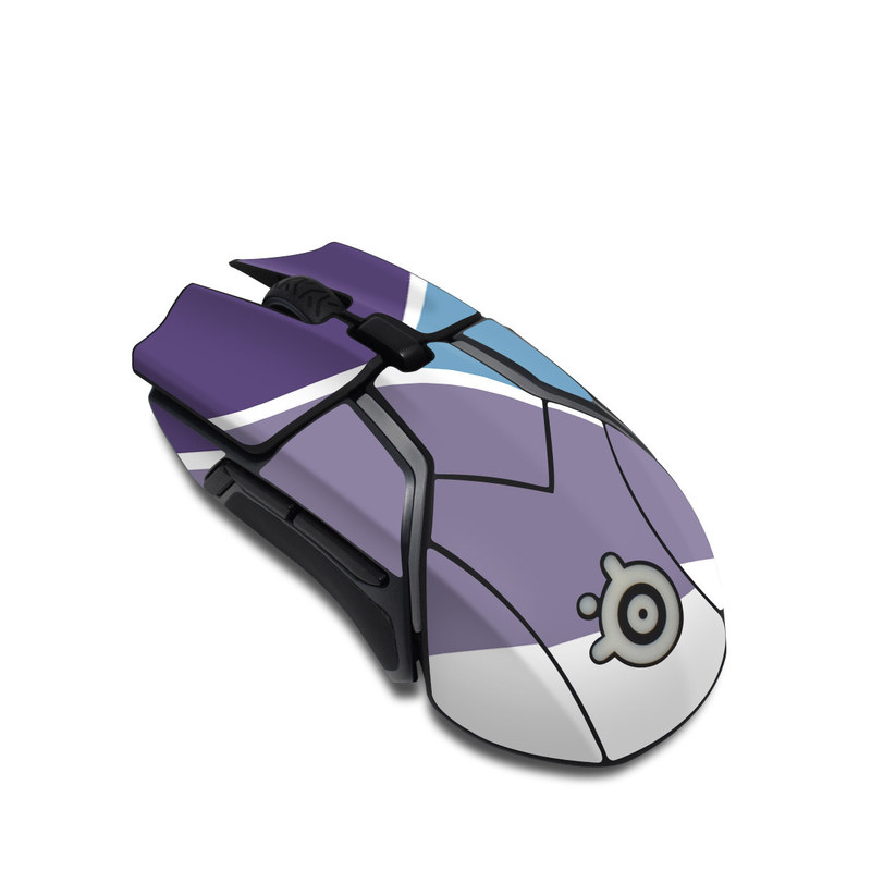 iStyles SteelSeries Rival 600 Gaming Mouse Skin design of Violet, Purple, Turquoise, Line, Pattern, Design, Graphic design, Font, Triangle, Magenta, with white, blue, purple colors, and tagged with patterns, block, blocking, color, colorblock, geometric, shape, simple.