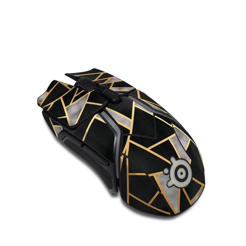 iStyles SteelSeries Rival 600 Gaming Mouse Skin design of Pattern, Triangle, Yellow, Line, Tile, Floor, Design, Symmetry, Architecture, Flooring, with black, gray, yellow colors, and tagged with patterns.