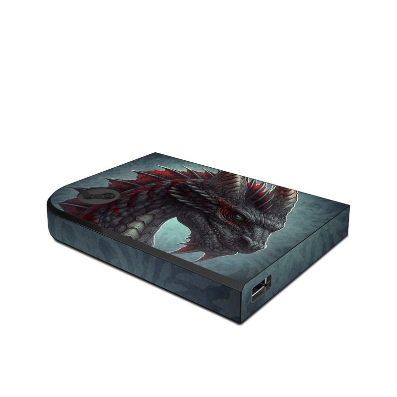 iStyles Valve Steam Link Skin design of Dragon, Fictional character, Mythical creature, Demon, Cg artwork, Illustration, Green dragon, Supernatural creature, Cryptid, with red, gray, blue colors, and tagged with fantasy, animals.