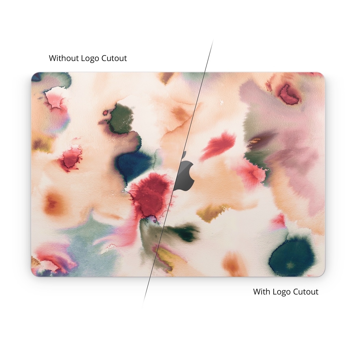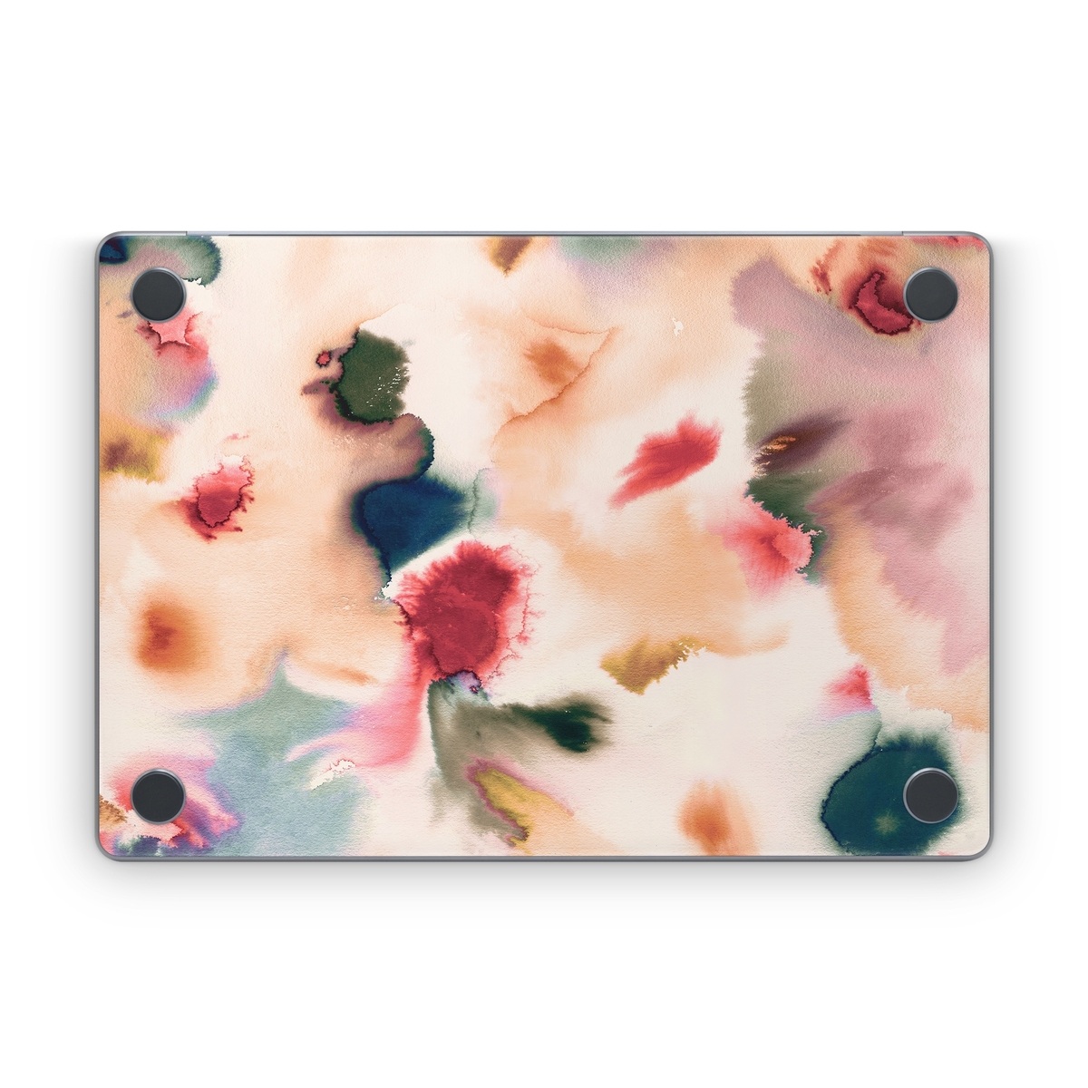iStyles Apple MacBook Skin design of Petal, Pink, Creative arts, Plant, Tints and shades, Art, Pattern, Porcelain, Close-up, Natural material, with white, blue, red, brown, orange, yellow, green colors, and tagged with patterns, colorful, rainbow, happy.