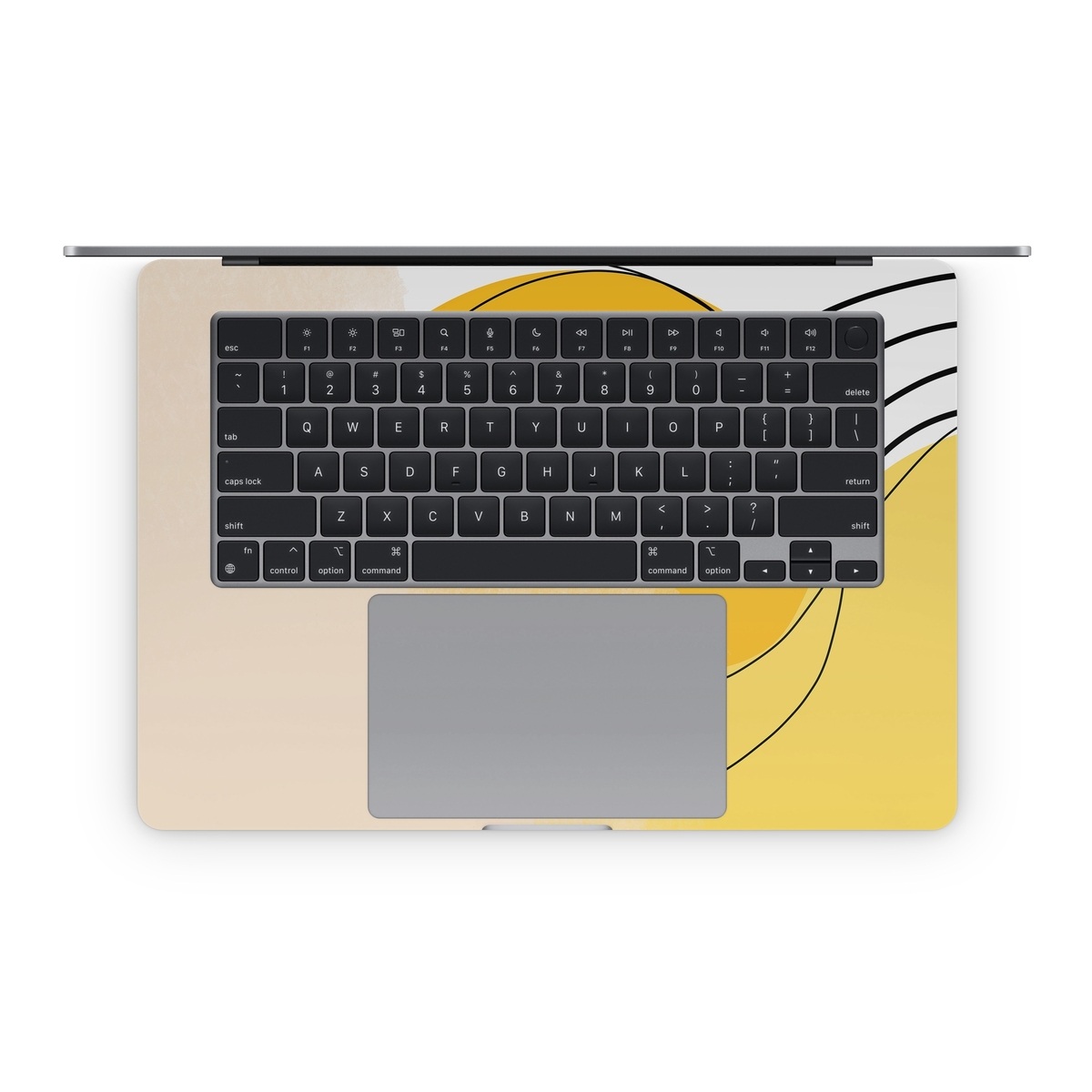 iStyles Apple MacBook Skin design of Yellow, Line, Illustration, Graphics, with white, black, brown, yellow colors, and tagged with abstract, abstract, bohemian, boho, illustration.