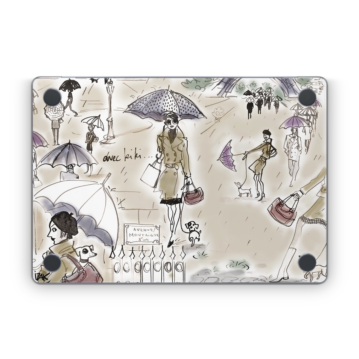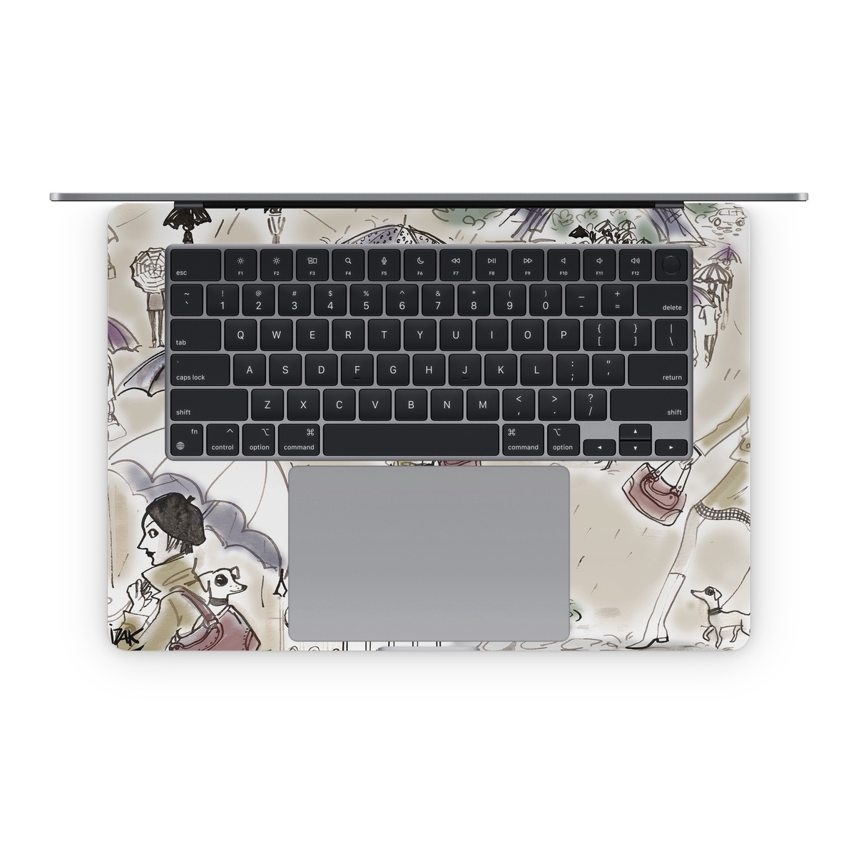 iStyles Apple MacBook Skin design of Cartoon, Umbrella, Illustration, Organism, Art, Fiction, Fictional character, with brown, gray, purple colors, and tagged with people, animals, urban, objects, fineart, signs.