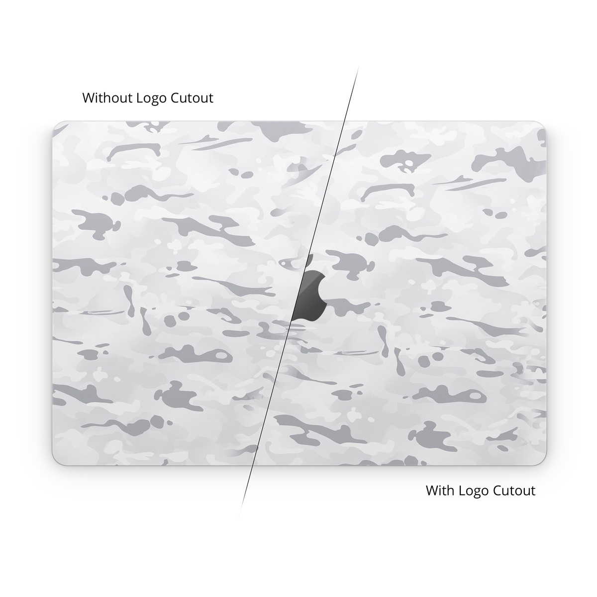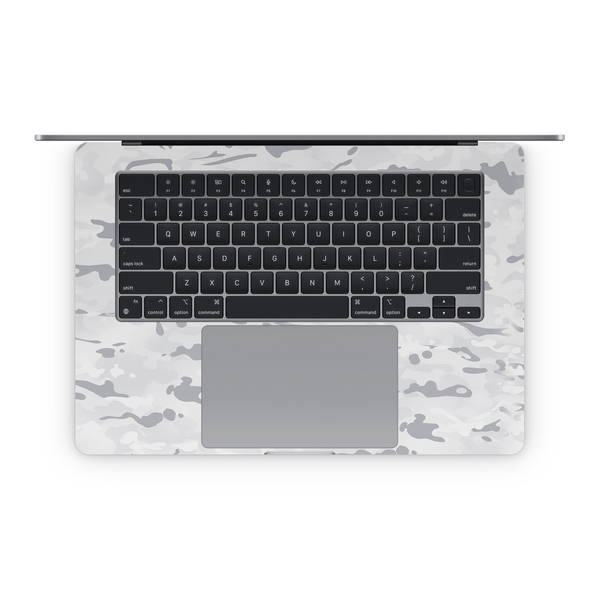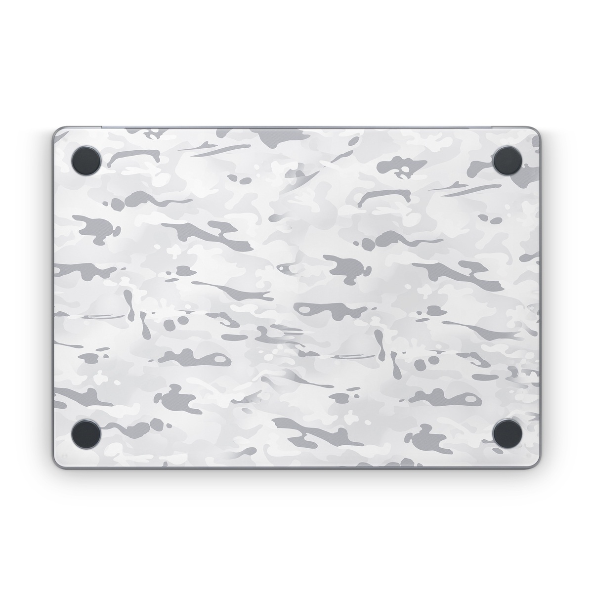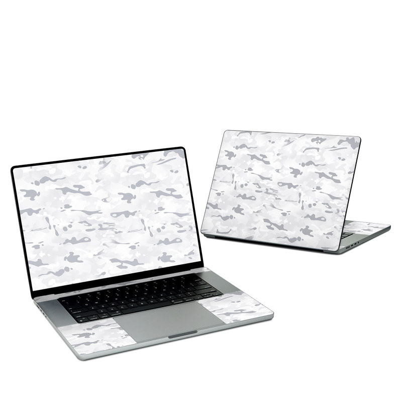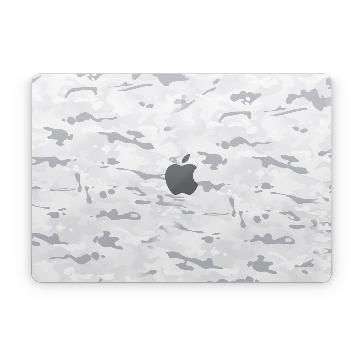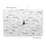 iStyles Apple MacBook Skin design of Vertebrate, Mammal, Grey, Pattern, Monochrome, Art, Monochrome photography, Rock, Font, Winter, with white, gray colors, and tagged with military, patterns, snow, camouflage, mountain, white.