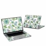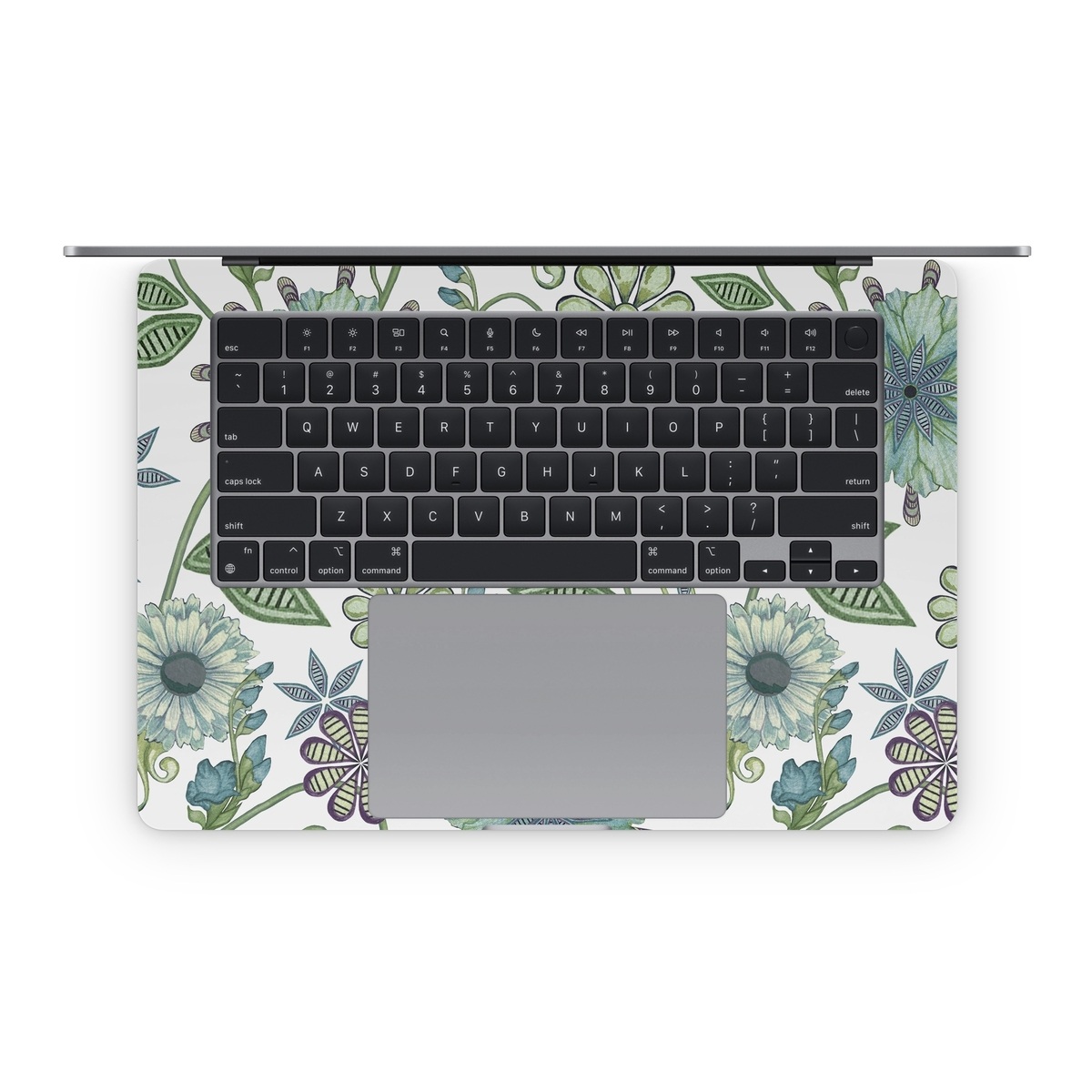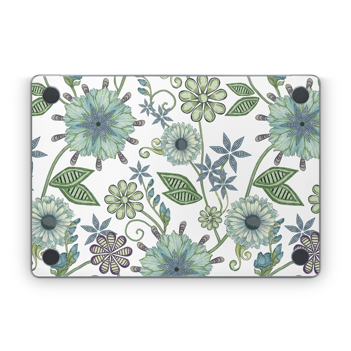 iStyles Apple MacBook Skin design of Green, Pattern, Flower, Botany, Plant, Leaf, Design, Wildflower, with white, green, blue colors, and tagged with patterns, flowers.